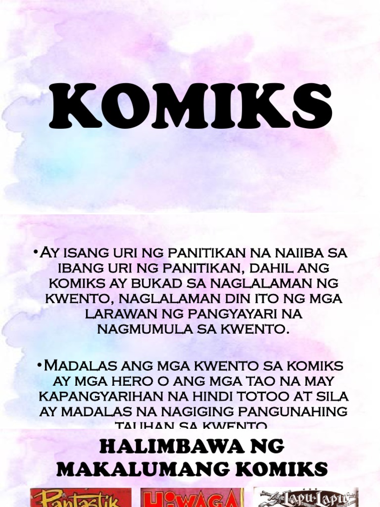 Na isinalin sa Tagalog. Ang komiks ay isang grapikong. 16032021 Panitikan ayon sa midyum.