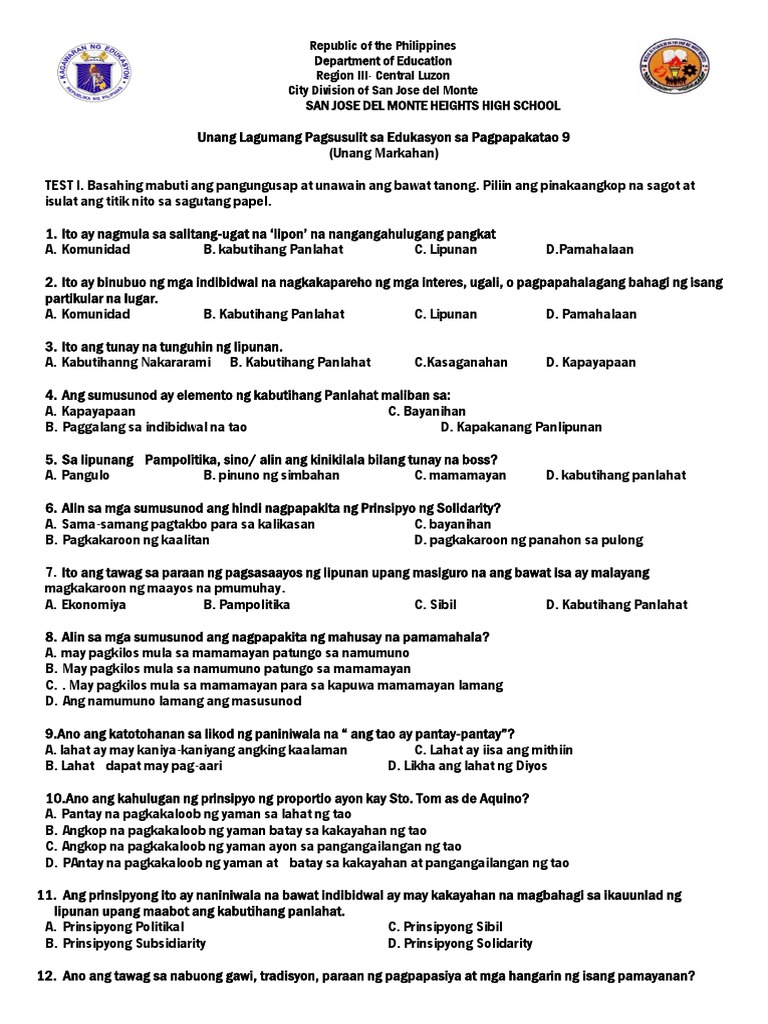 Edukasyon Sa Pagpapakatao 9 Yunit I Prinsipyo Ng Subsidiarity At So