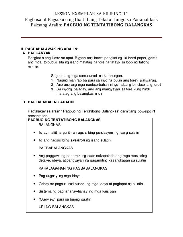Halimbawa Ng Balangkas Mga Halimbawa Ng Balangkas